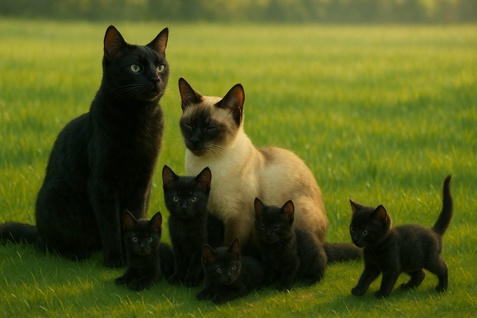 특이하게도 검은 고양이 두 마리가 낳은 새끼들이